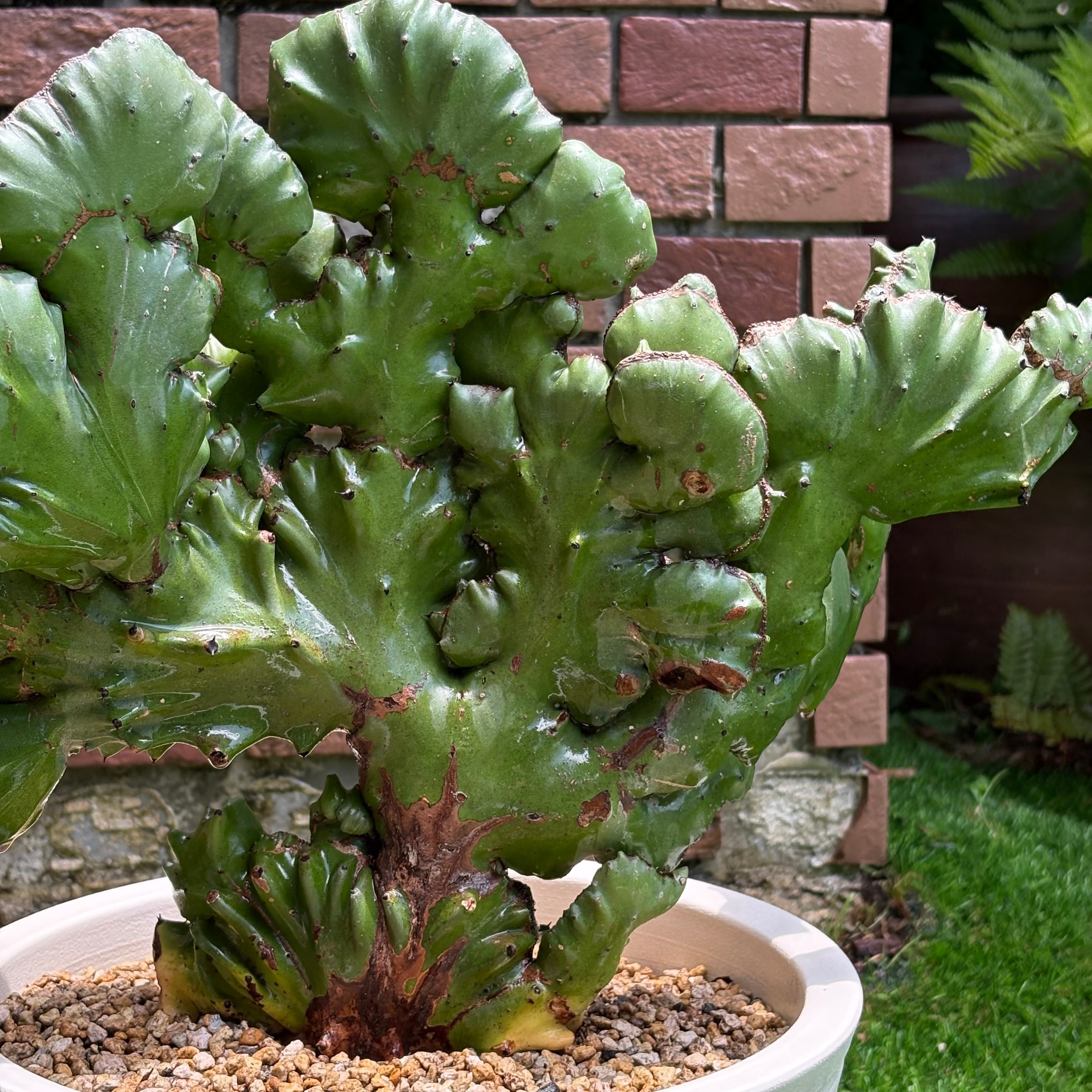 力強く波を打った樹形のマカイキリンは一年で5cmしか伸びないと言われています。