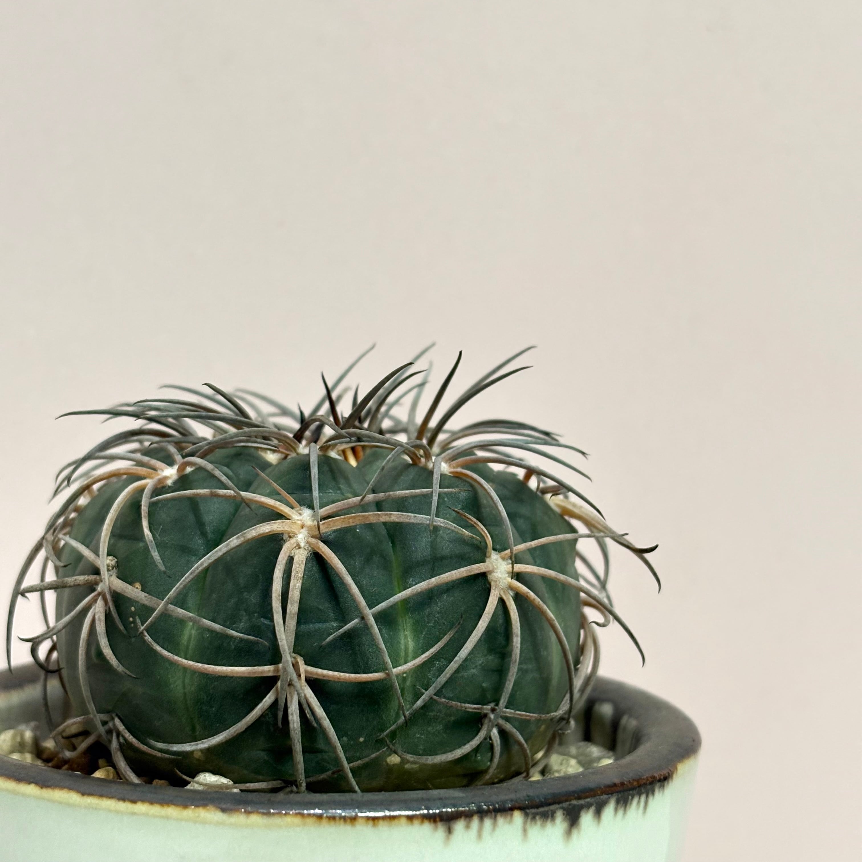 黒紫色を帯びるごつごつとした肌と、力強いトゲが特徴の天平丸。成長はゆっくりですが、春には上品な花を咲かせます。独特の質感と迫力ある姿から、コレクターに人気の高い種です。