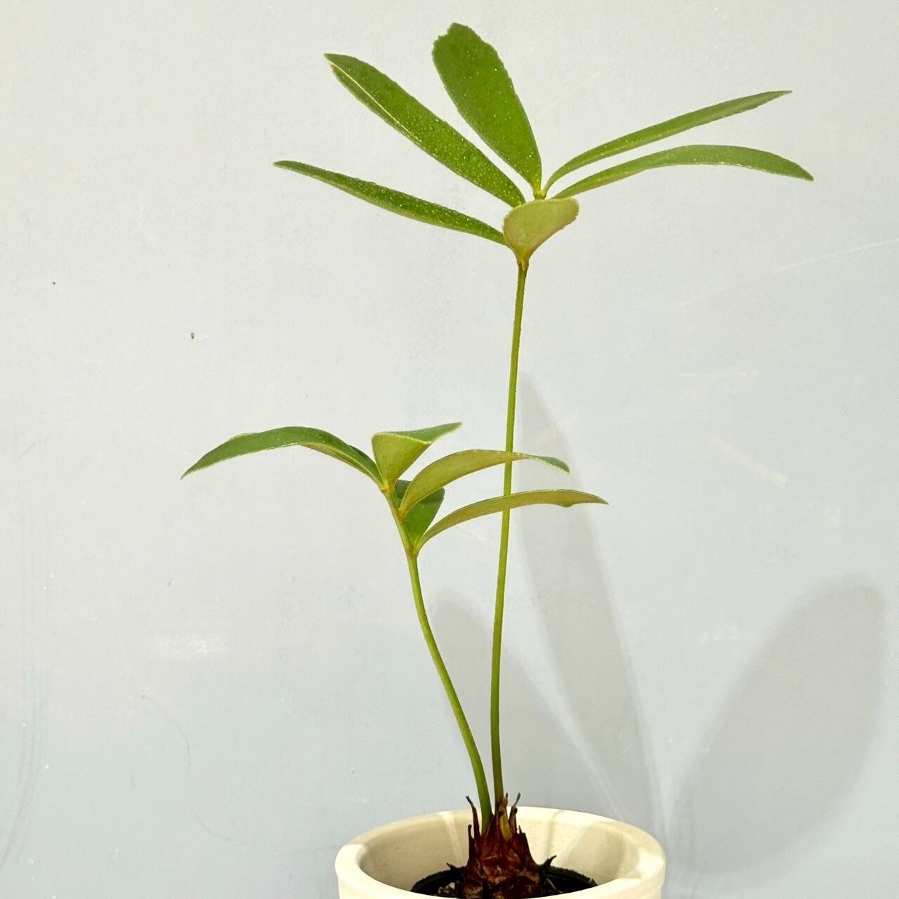 細く丸い葉と大きくなると株元が太る可愛い植物