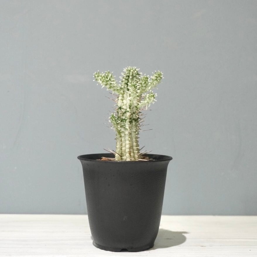 白い幹肌と淡い緑の模様が美しいユーフォルビア・白樺キリン。