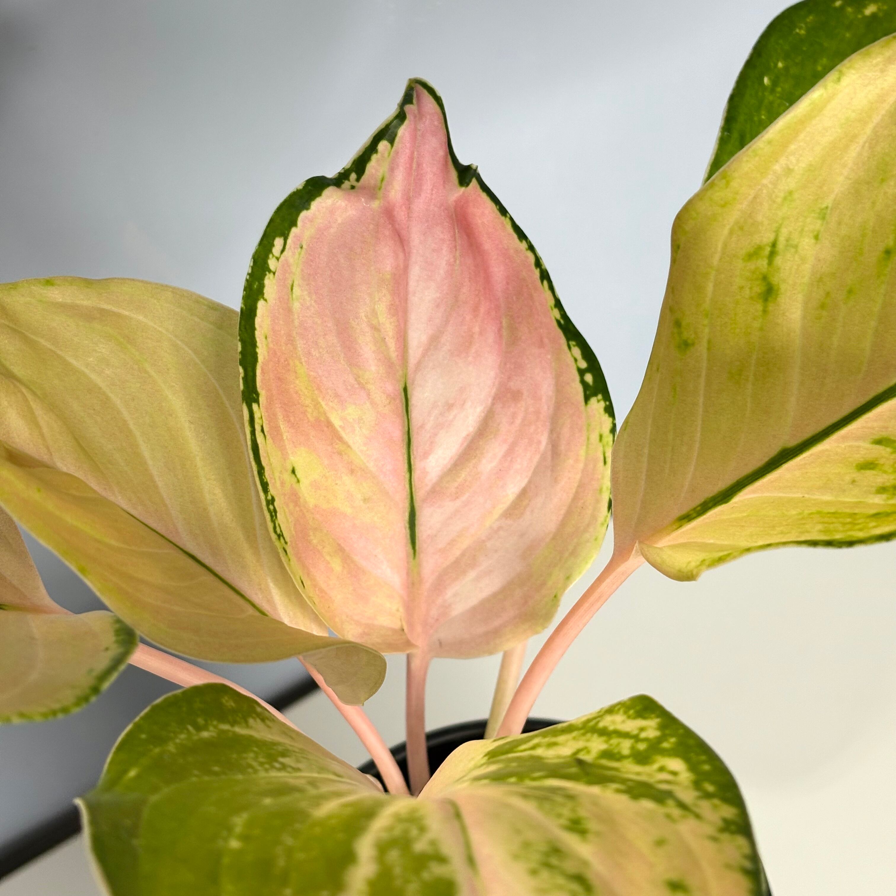 葉に入るピンク、グリーン、イエローの鮮やかな斑が魅力です。耐陰性に優れており、室内の少ない光でも比較的元気に育つため、オフィスやリビングなど様々な場所に置けます。タイでは**「幸せを招く宝石」**と呼ばれ、縁起が良い植物として人気があります。