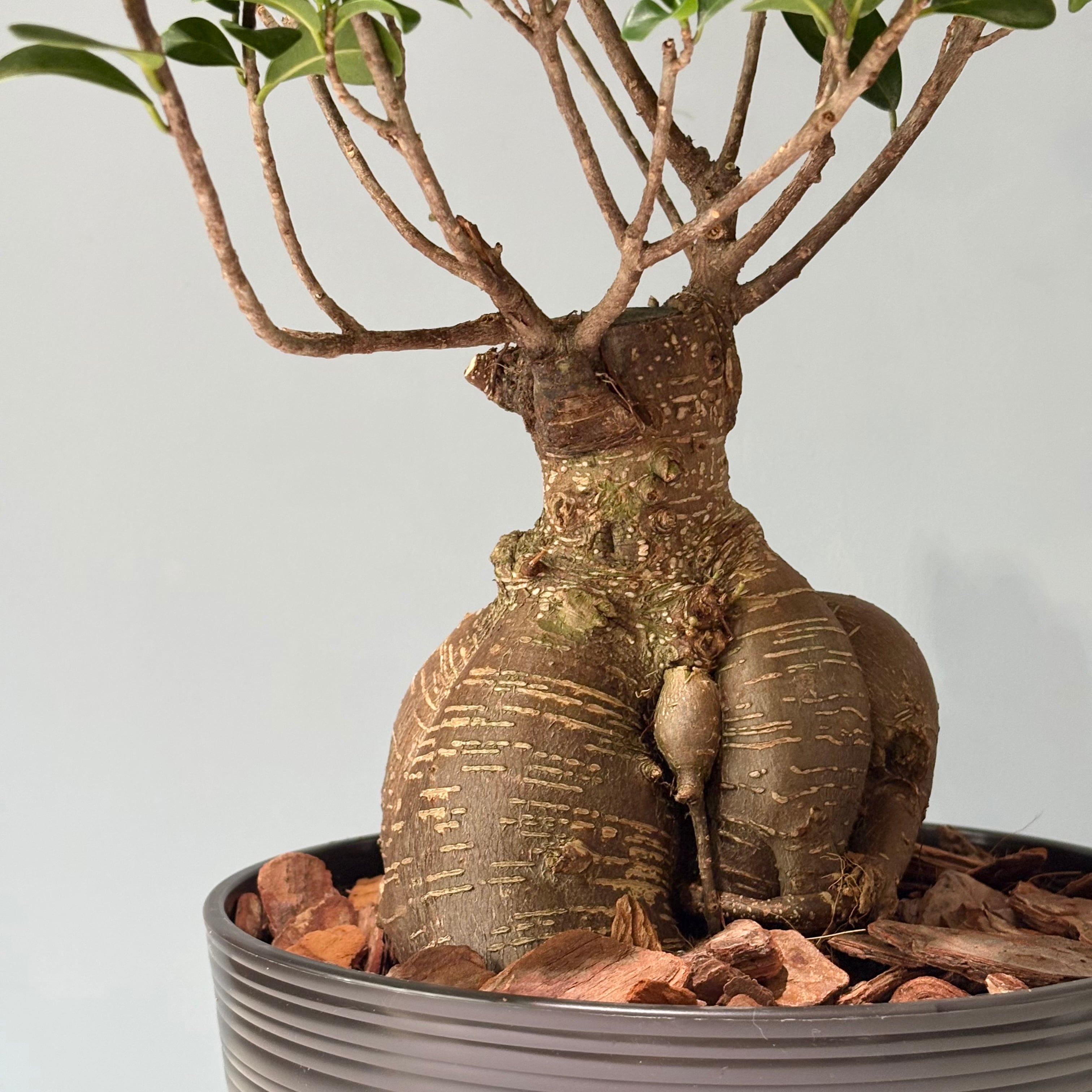 ぷっくりとした幹が特徴的で、個性的な樹形を楽しめる植物。