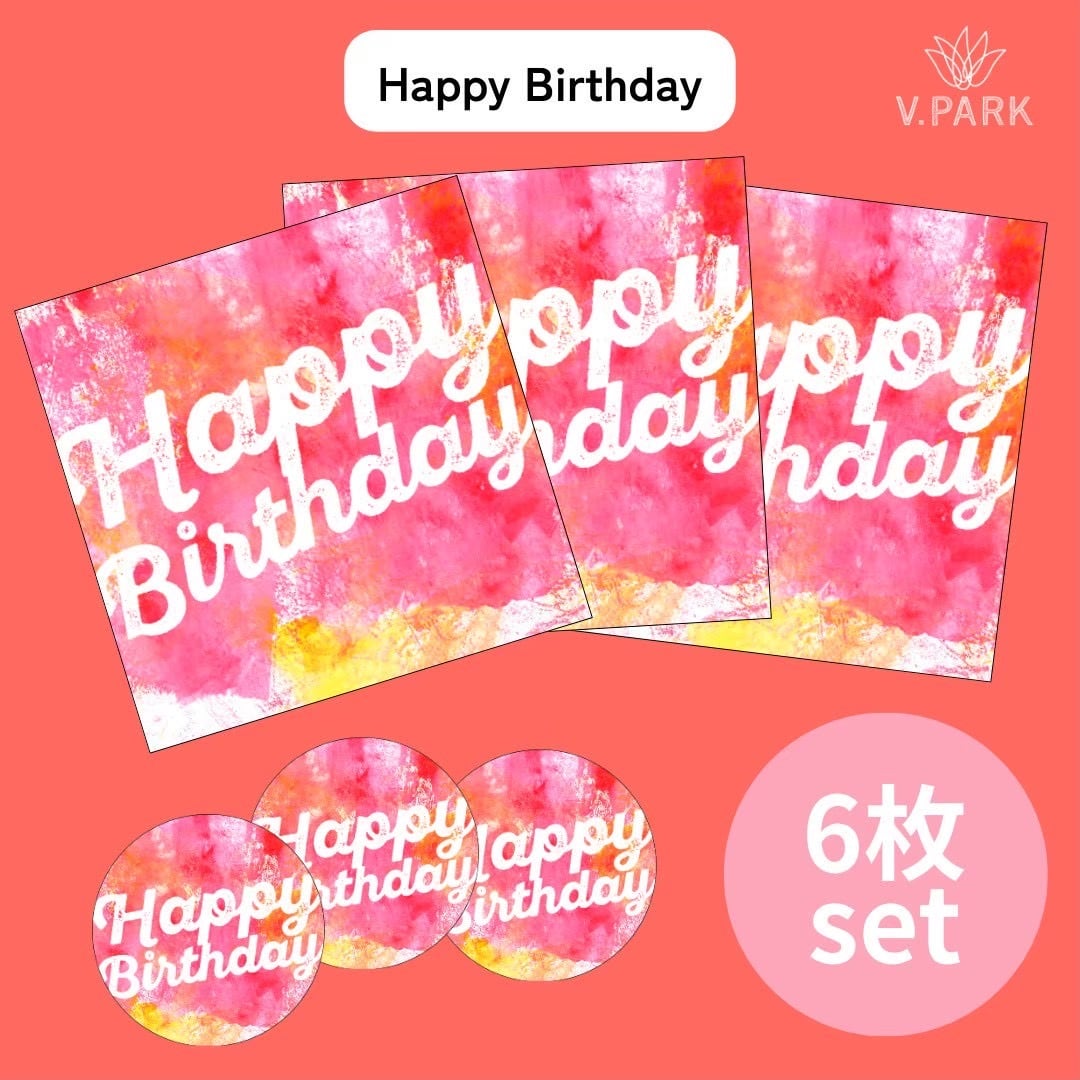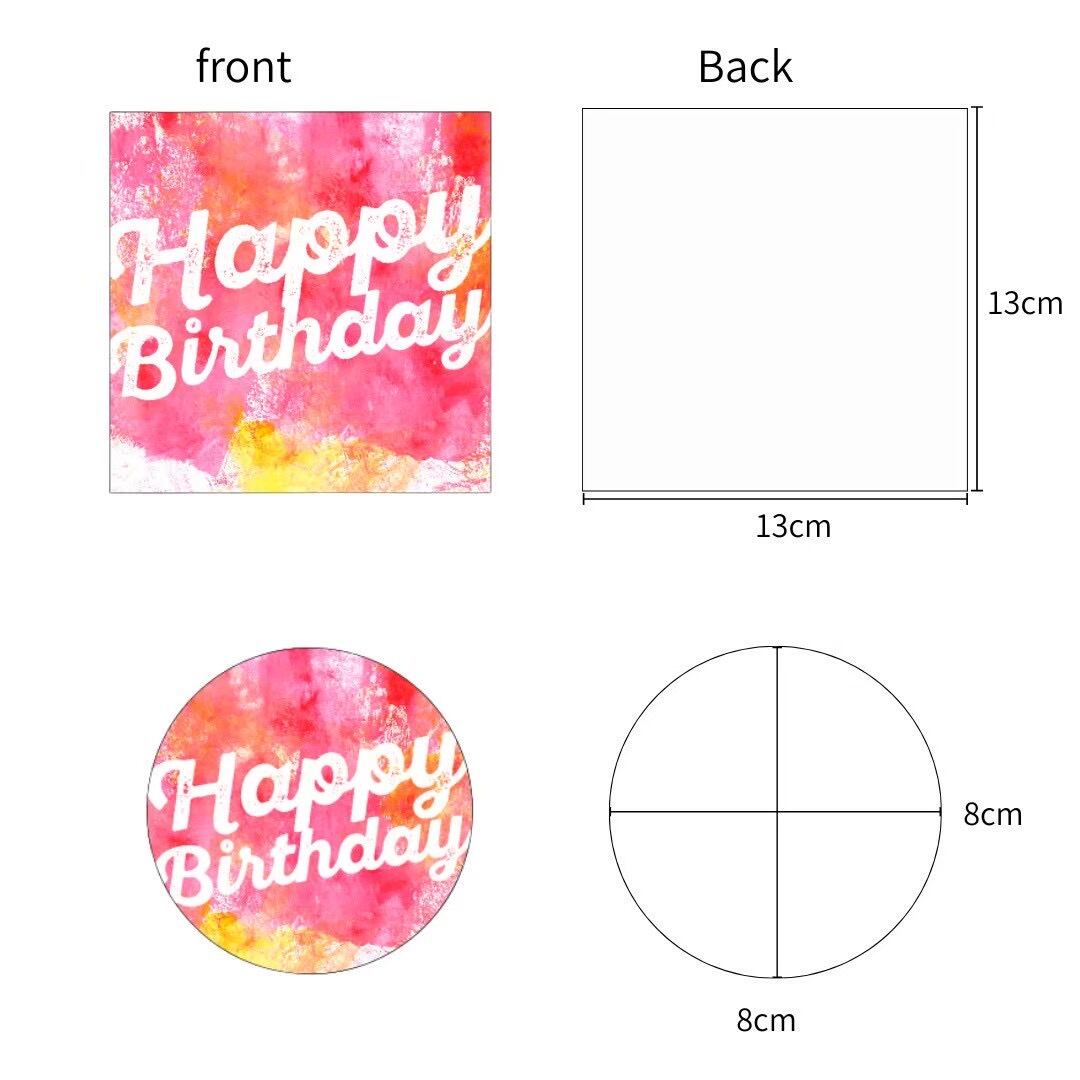 メッセージ【Happy birthday】 四角:13cm×13cm 丸:直径8cm 四角3枚、丸3枚、計6枚セット