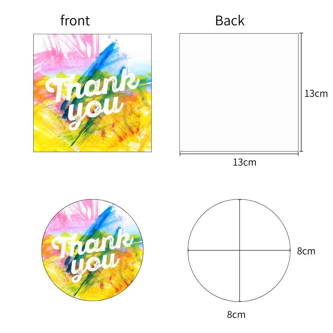 メッセージ【Thank you】 四角:13cm×13cm 丸:直径8cm 四角3枚、丸3枚、計6枚セット