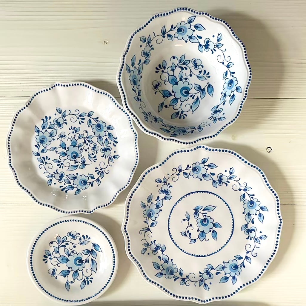 ブルー花柄 メラミン皿 Mサイズ 直径21cm