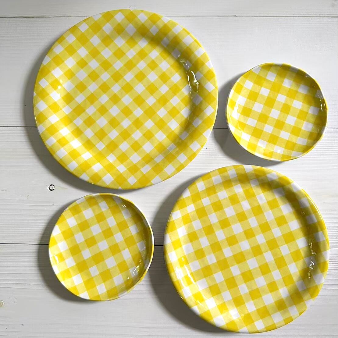 ギンガムチェックイエロー メラミン皿 Sサイズ2枚組 直径15cm