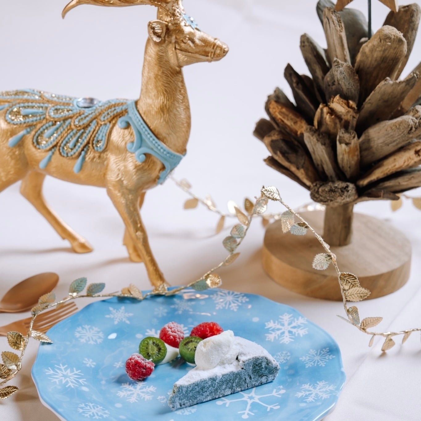 クリスマス ブルー メラミン皿 Mサイズ 直径22cm