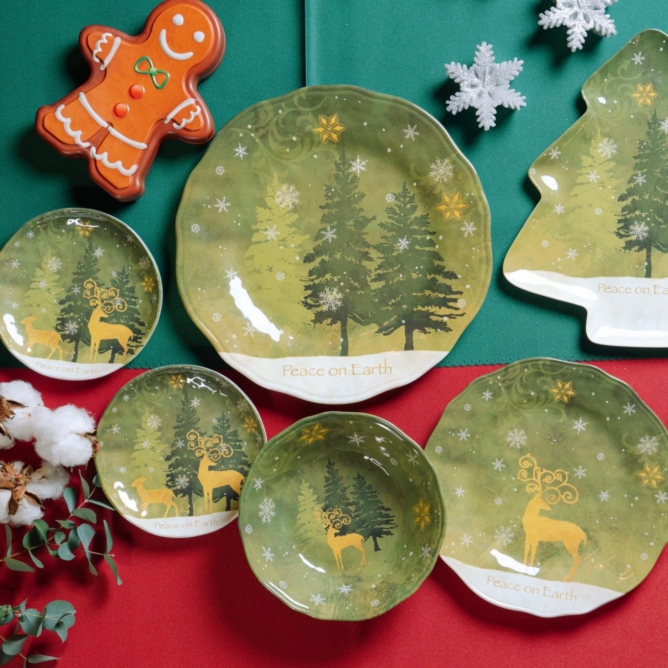 クリスマス グリーン メラミン皿 セット L×1、S×2、ボウル×1